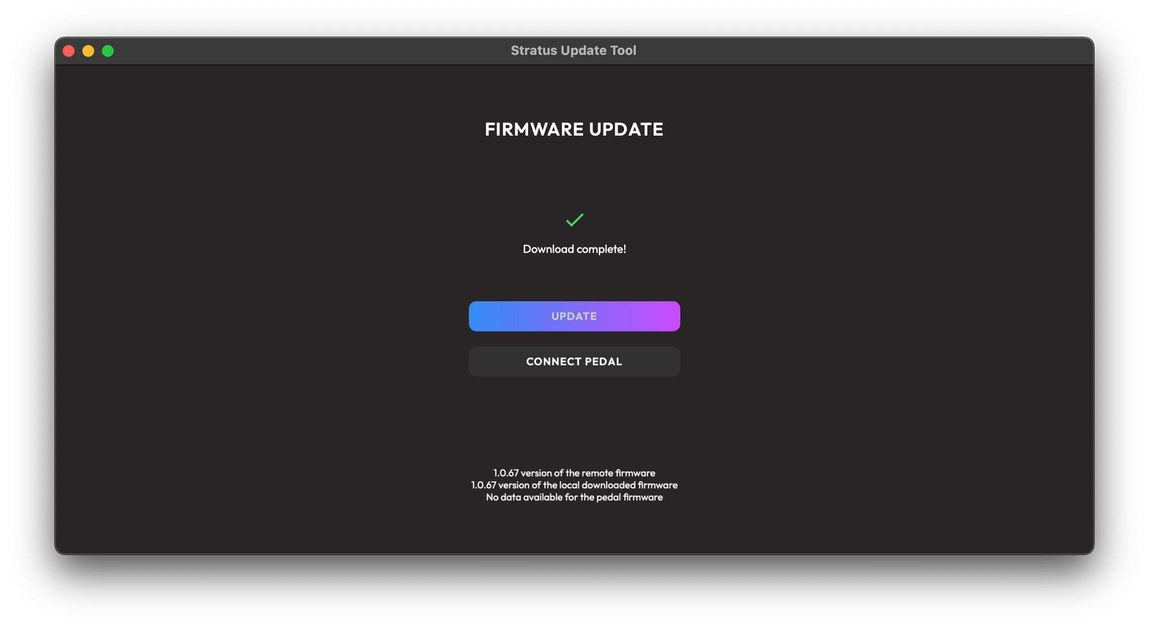 The Stratus Update Tool is available as a convenient way to update your Stratus® pedal with the latest and greatest software. Available for Windows and macOS devices.
